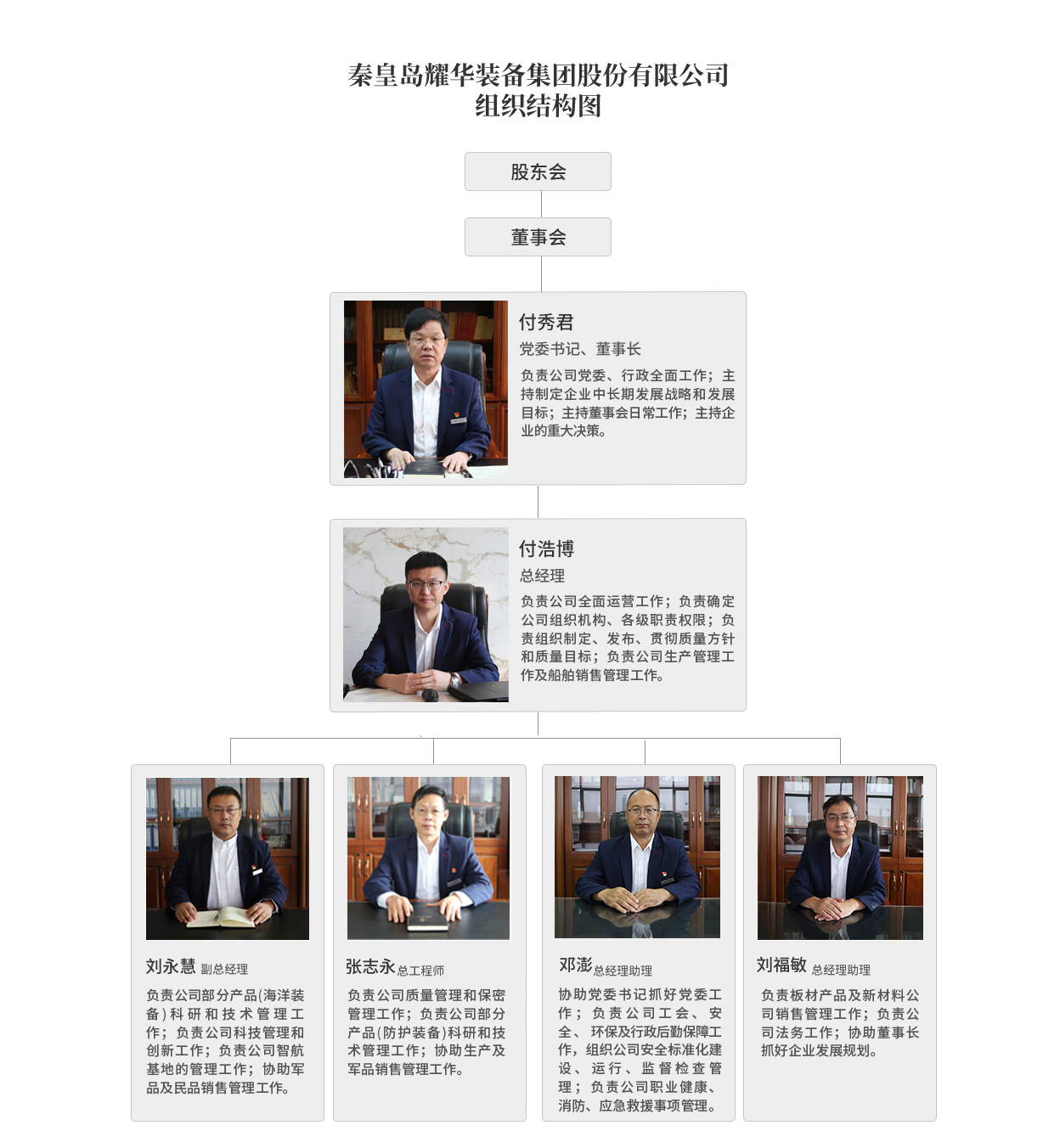 付浩博先生在企業(yè)管理、生產(chǎn)管理、采購管理、財務管理、銷售管理等方面擁有10余年經(jīng)驗。付浩博先生擁有北京大學光華管理學院EMBA專業(yè)碩士研究生學位,天津工業(yè)大學財務管理專業(yè)學士學位,曾在美國俄克拉荷馬大學攻讀人力資源管理碩士,正高級工程師,2021年榮獲中國船舶集團“管理創(chuàng)新成果二等獎”,2022年被評為北京大學光華管理學院“優(yōu)秀畢業(yè)生”,現(xiàn)任秦皇島市工商聯(lián)(總商會)副會長,秦皇島市第十五屆人大代表,天津工業(yè)大學青年企業(yè)家校友聯(lián)盟主席。